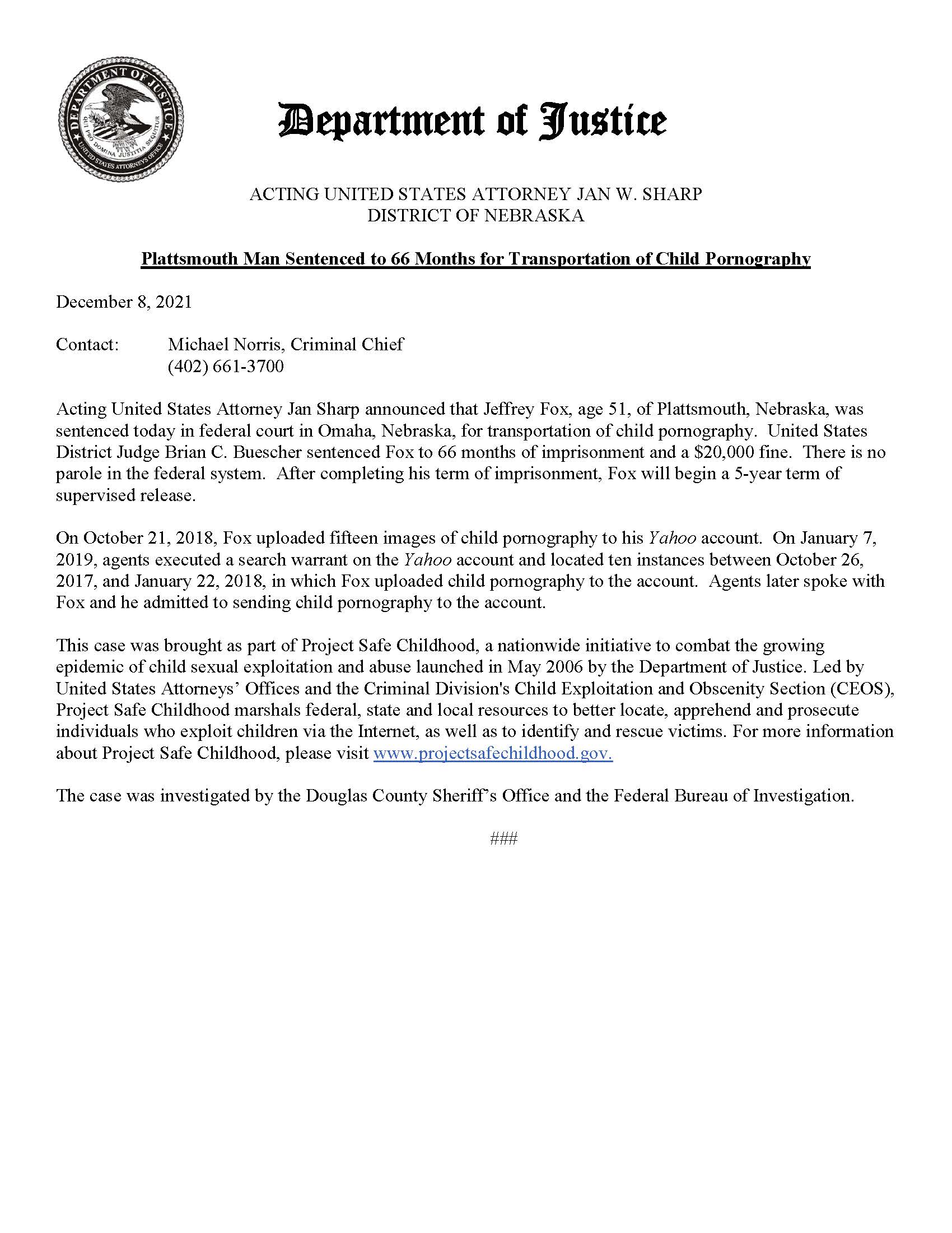 U S Attorney Nebraska On Twitter Jack Lee Of Omaha Was Sentenced To 66 Months For Transportation Of Child Pornography After His Release He Will Serve 8 Years Supervised Release And Be Required